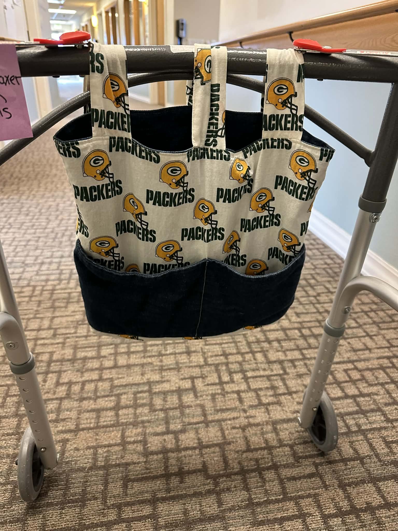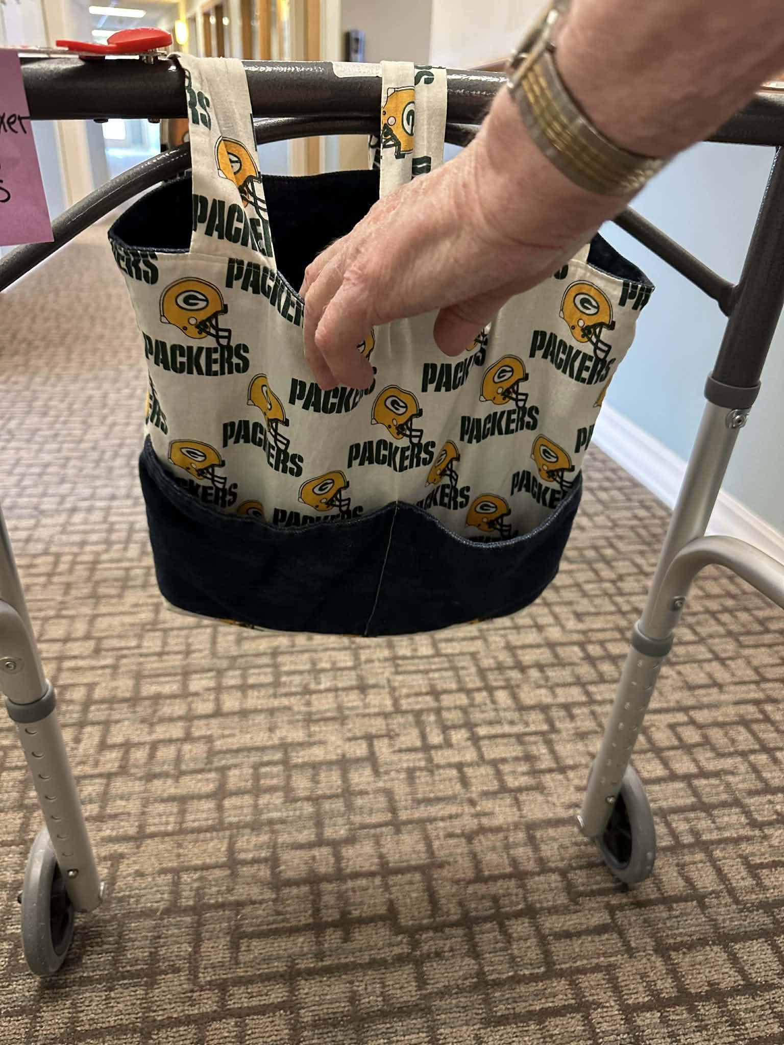 Our supply of Walker bags or caddies is running low. Are you a crafter or do you sew? Walker bags help our residents stay mobile, organized, and independent every day. Each bag or caddy you make brings convenience, dignity, and a smile to one of our residents. Our goal is to build our supply back up to 65 bags/caddies. Any number of bags you could donate are deeply appreciated and loved. Pictures of a well loved walker bag listed below. Easy to find & follow free patters can be found on-line or reach out to Sally and she can email you one.